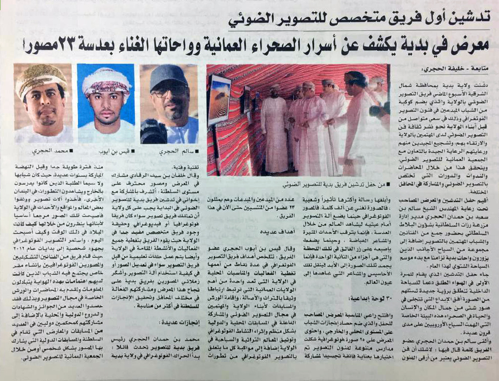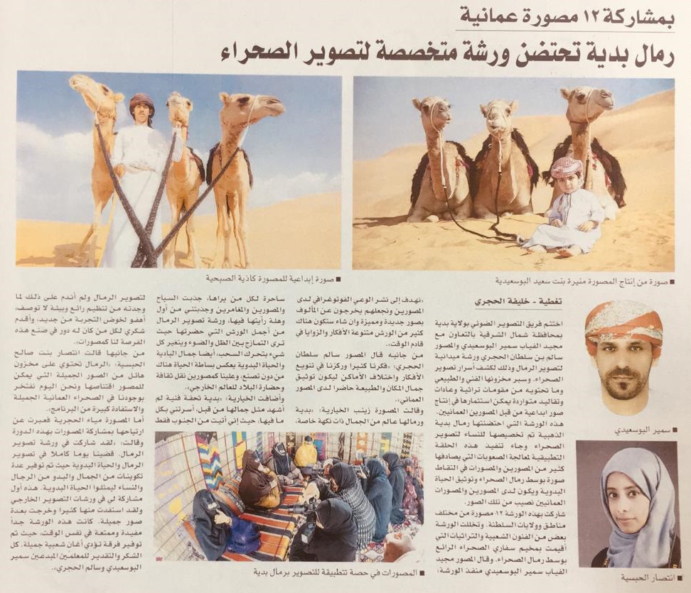 خبر جريدة عمان- ورشه تصوير الصحراء بولاية بدية للمصورات